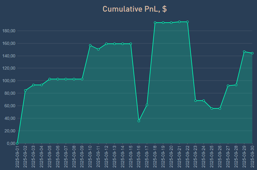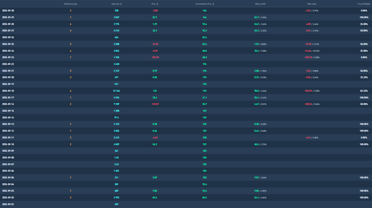 For Algomoneo, August 2025 was the most successful month of the year so far. Sharp increases in the prices of major cryptocurrencies as well as numerous altcoins traded by the Algomoneo system, followed by subsequent declines, created a large number of opportunities, which the algorithm exploited with high efficiency to our satisfaction.